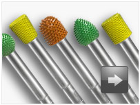 Saburrtooth® rotary tools feature long-lasting, razor-sharp carbide cutting teeth arranged into a unique open pattern to resist loading while providing rapid stock removal and smoother finishes. Rotary tools are available in many shapes, sizes and textures to suit your carving, grinding, turning, cutting and machining needs.